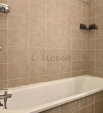 This apartment is equipped with a bathroom. This bathroom is furnished with all the equipment you need for a comfortable stay: cupboard, bath tub, lamp, sink, mirror, towel drying radiator, curtains, ventilator. The toilets are separated from the bathroom and located in an independant room.