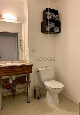 This apartment is equipped with a bathroom. This bathroom is furnished with all the equipment you need for a comfortable stay: cupboard, bath tub, sink. The toilets are separated from the bathroom and located in an independant room.