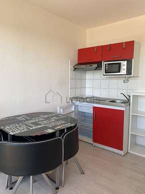 Este apartamento posee una cocinay todo el equipamiento necesario para su vida diaria : placas eléctricas, refrigerador, micro ondas, mesa, estantería, 1 silla(s).
