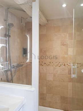 Este dúplex tiene una sala de baño magnífica y muy clara. Este baño tiene todo lo necesario para su bienestar diario : toallas, ducha, secador de pelo, sink, towel rack, bin, radiador seca-toallas, carpet, ventilator. El WC está separado de la sala del baño y ubicado en un espacio independiente.