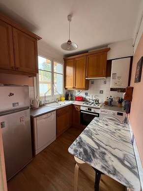Este apartamento posee una magnífica cocina con parquet en el sueloy todo el equipamiento necesario para su vida diaria : placas eléctricas, refrigerador, congelador, horno, campana extractora, tostador, hervidor, cafetera, mesa, armario empotrado, vajilla.