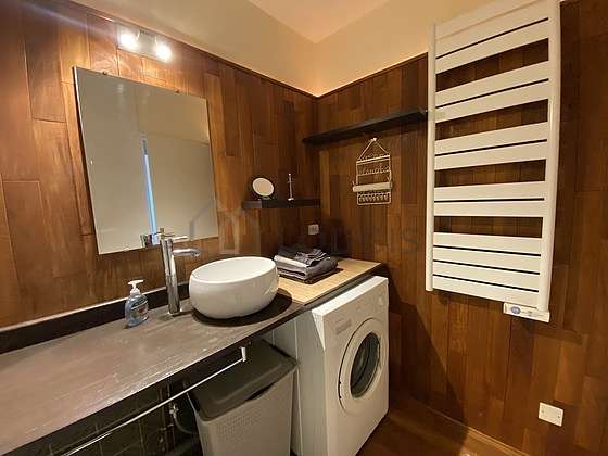Este apartamento tiene una sala de baño. Este baño tiene todo lo necesario para su bienestar diario : armario empotrado, ducha, radiador seca-toallas. El WC está separado de la sala del baño y ubicado en un espacio independiente.