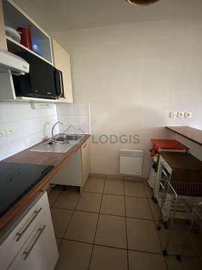 Este apartamento posee una cocinay todo el equipamiento esencial para su vida diaria : vajilla, water glass.