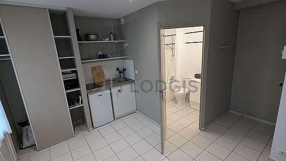 Este apartamento posee una magnífica cocina con azulejo en el sueloy todo el equipamiento necesario para su vida diaria : placas eléctricas, micro ondas, armario empotrado.