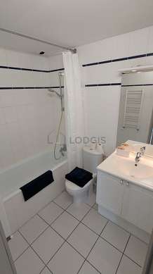 Este apartamento tiene una sala de baño magnífica y muy clara. Este baño tiene todo lo necesario para su bienestar diario. El WC está separado de la sala del baño y ubicado en un espacio independiente.