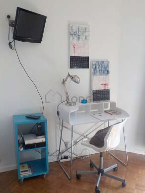 SalónEste apartamento está formado por un salón con parquet en el suelo una vista a al patio. Este salón muy tanquilo está amueblado y equipado para que su estancia sea agradable : televisor, sábanas, edredones, 1 sillones, mesa, mesa de estudio, ropero, estantería, armario, armario empotrado, vajilla, 1 silla(s)1 cama.