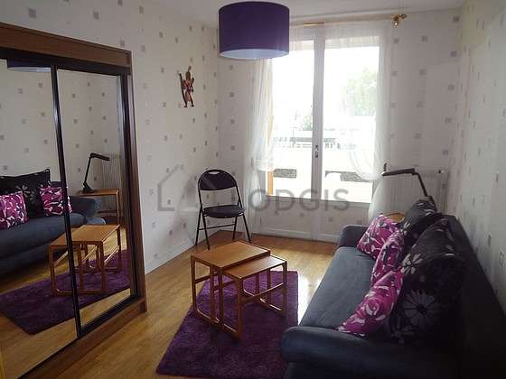 Este apartamento está formado por un salón ventanas doble acristalamiento. Este salón está amueblado y equipado para que su estancia sea agradable : televisor, sofá, mesa, 1 silla(s).