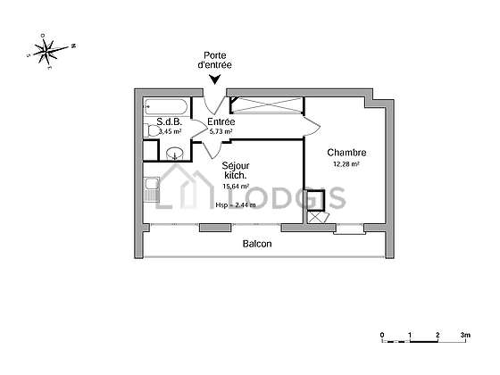 Este apartamento tiene una sala de baño. Este baño tiene todo lo necesario para su bienestar diario : bañera, sink. El WC está separado de la sala del baño y ubicado en un espacio independiente.