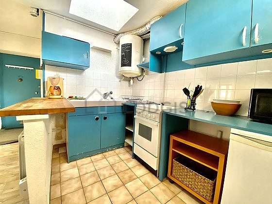 Este apartamento posee una cocinay todo el equipamiento esencial para su vida diaria : placas eléctricas, refrigerador, horno, micro ondas, congelador, armario empotrado.