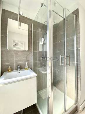 Este apartamento tiene una sala de baño. Este baño tiene todo lo necesario para su bienestar diario : ducha. El WC está separado de la sala del baño y ubicado en un espacio independiente.