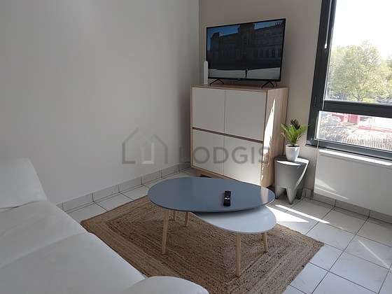 SalónEste apartamento está formado por un salón con azulejo en el suelo y ventanas doble acristalamiento. Este salón muy tanquilo está amueblado y equipado para que su estancia sea agradable : televisor, edredones, refrigerador, sofá, 1 sillones, mesa, ropero, estantería, armario, cómoda, aparador, armario empotrado, vajilla, 1 silla(s), taburete, airer, tv stand, mirror, coat stand, bin, set of tables, carpet1 armario cama.