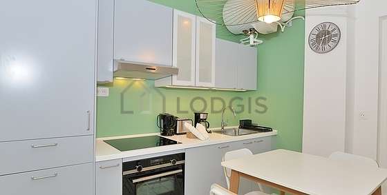 Este apartamento posee una cocinay todo el equipamiento esencial para su vida diaria : placas eléctricas, horno, campana extractora, tostador, hervidor, cafetera, mesa, armario empotrado, vajilla, 1 silla(s).