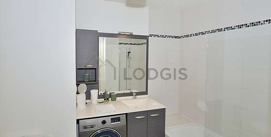 Este apartamento tiene una sala de baño. Este baño tiene todo lo necesario para su bienestar diario : armario empotrado, bañera, sink, radiador seca-toallas. El WC está separado de la sala del baño y ubicado en un espacio independiente.
