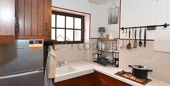 Este apartamento posee una cocinay todo el equipamiento indispensable para su vida diaria : placas eléctricas, refrigerador, congelador, horno, micro ondas, campana extractora, tostador, hervidor, cafetera, armario empotrado, vajilla.