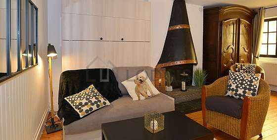 SalónEste apartamento está formado por un salón ventanas doble acristalamiento y una vista a al patio. Este salón muy tanquilo está amueblado y equipado para que su estancia sea agradable : televisor, sábanas, edredones, sofá, mesa, ropero, chimenea, 1 silla(s).