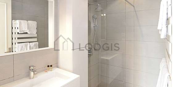 Este apartamento tiene una sala de baño. Este baño tiene todo lo necesario para su bienestar diario : armario empotrado, ducha, sink, radiador seca-toallas. El WC está separado de la sala del baño y ubicado en un espacio independiente.