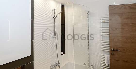 Este apartamento tiene una sala de baño. Este baño tiene todo lo necesario para su bienestar diario : armario empotrado, ducha, sink, radiador seca-toallas. El WC está separado de la sala del baño y ubicado en un espacio independiente.