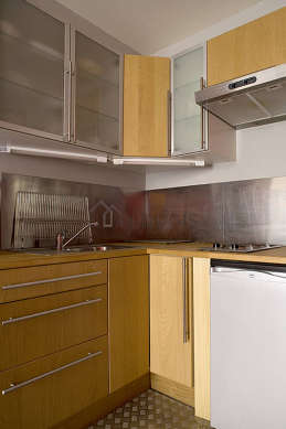 Este apartamento posee una cocinay todo el equipamiento esencial para su vida diaria : placas eléctricas, refrigerador, micro ondas, campana extractora, armario empotrado, vajilla.