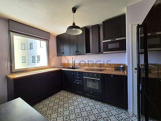 Este apartamento posee una cocinay todo el equipamiento indispensable para su vida diaria : placas eléctricas, refrigerador, congelador, horno, micro ondas, campana extractora, armario empotrado, vajilla, work surface.