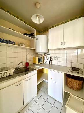 Este apartamento posee una cocinay todo el equipamiento esencial para su vida diaria : placas eléctricas, refrigerador, congelador, armario empotrado.