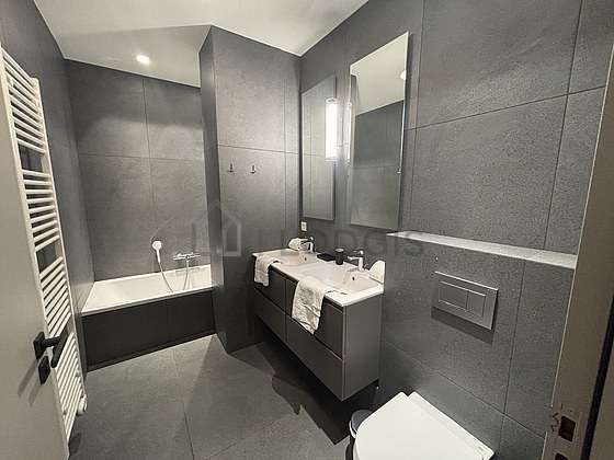 Este apartamento tiene una sala de baño. Este baño tiene todo lo necesario para su bienestar diario : bañera. El WC está separado de la sala del baño y ubicado en un espacio independiente.