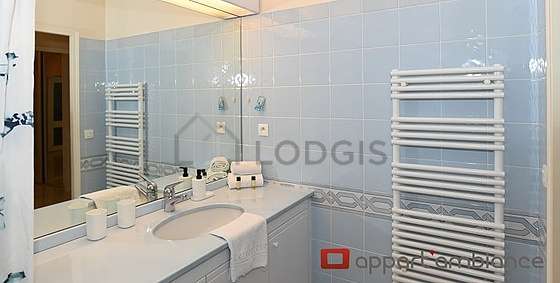 Este apartamento tiene una sala de baño. Este baño tiene todo lo necesario para su bienestar diario : toallas, armario empotrado, bañera, sink. El WC está separado de la sala del baño y ubicado en un espacio independiente.