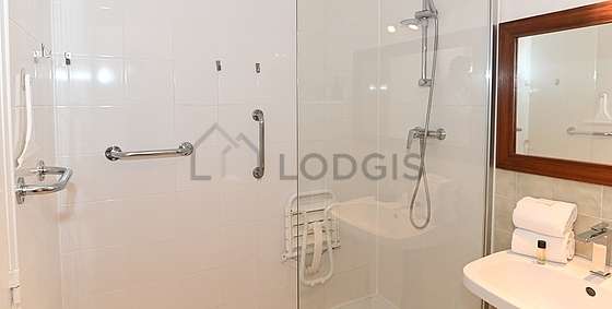 Este apartamento tiene una sala de baño. Este baño tiene todo lo necesario para su bienestar diario. El WC está separado de la sala del baño y ubicado en un espacio independiente.