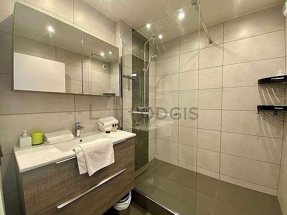 Este apartamento tiene una sala de baño. Este baño tiene todo lo necesario para su bienestar diario. El WC está separado de la sala del baño y ubicado en un espacio independiente.