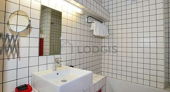 Este apartamento tiene una sala de baño. Este baño tiene todo lo necesario para su bienestar diario : toallas, bañera, secador de pelo, sink, mirror, towel rack. El WC está separado de la sala del baño y ubicado en un espacio independiente.