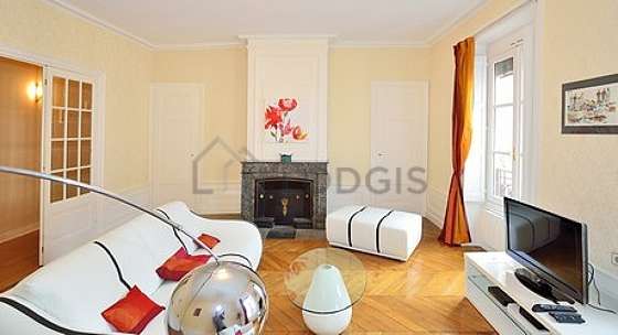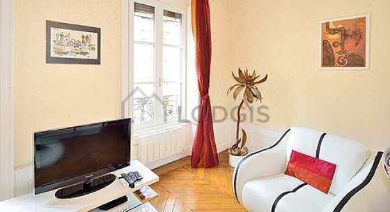 SalónEste apartamento está formado por un salón con parquet en el suelo y ventanas. Este salón está amueblado y equipado para que su estancia sea agradable : televisor, sofá, 1 sillones, mesita.