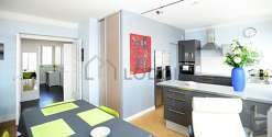 Este apartamento posee una cocinay todo el equipamiento necesario para su vida diaria : placas eléctricas, refrigerador, campana extractora, tostador, cafetera, armario empotrado, vajilla.