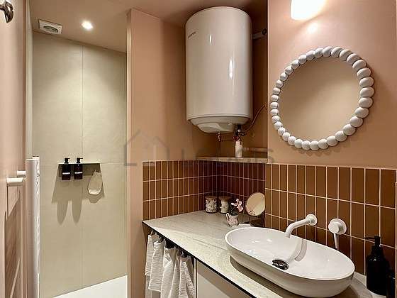 Este apartamento tiene una sala de baño. Este baño tiene todo lo necesario para su bienestar diario : toallas, ducha, sink, mirror. El WC está separado de la sala del baño y ubicado en un espacio independiente.