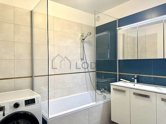 Este apartamento tiene una sala de baño. Este baño tiene todo lo necesario para su bienestar diario : bañera, sink. El WC está separado de la sala del baño y ubicado en un espacio independiente.
