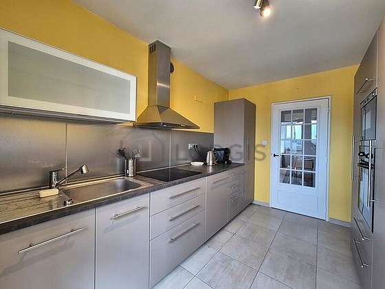 Este apartamento posee una cocinay todo el equipamiento esencial para su vida diaria : placas eléctricas, refrigerador, congelador, horno, campana extractora, vajilla.