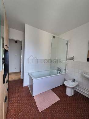 Este apartamento tiene una sala de baño. Este baño tiene todo lo necesario para su bienestar diario : armario, bañera. El WC está separado de la sala del baño y ubicado en un espacio independiente.