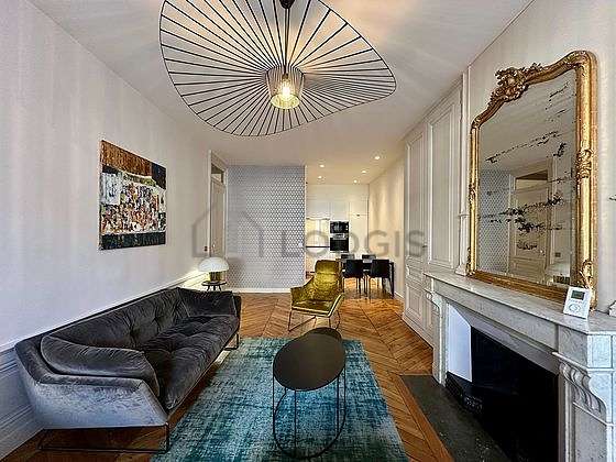 SalónEste apartamento está formado por un salón ventanas doble acristalamiento. Este salón está amueblado y equipado para que su estancia sea agradable : televisor, sofá, 1 sillones, mesa, mesita, armario empotrado, chimenea, tv stand, painting.