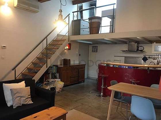 Gracias a una altura del techo, un altillo ha sido instalado en este apartamento , ofreciéndole un verdadero espacio suplementario.