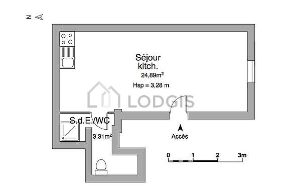Este apartamento posee una cocina contiguo al salóny todo el equipamiento indispensable para su vida diaria : placas eléctricas, refrigerador, horno, congelador, campana extractora.