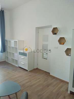 SalónEste apartamento está formado por un salón con parquet en el suelo una vista a la calle. Este salón está amueblado y equipado para que su estancia sea agradable : sofá, mesita, estantería, cómoda1 cama.