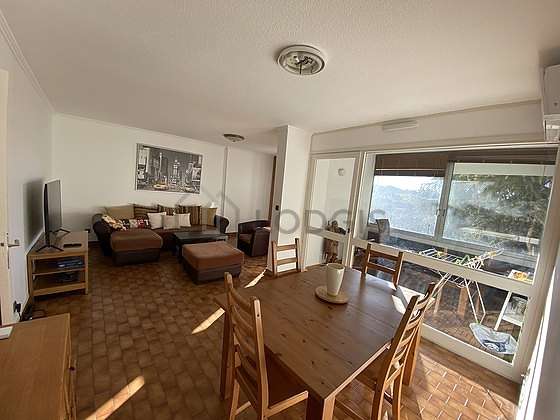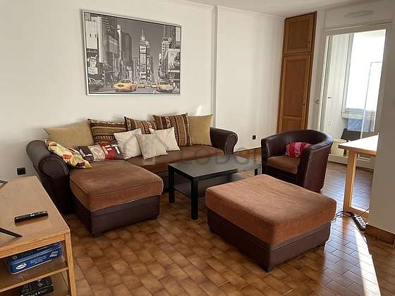 Este apartamento está formado por un salón con parquet en el suelo y ventanas doble acristalamiento. Este salón muy tanquilo está amueblado y equipado para que su estancia sea agradable : televisor, sofá, mesa, 1 silla(s).