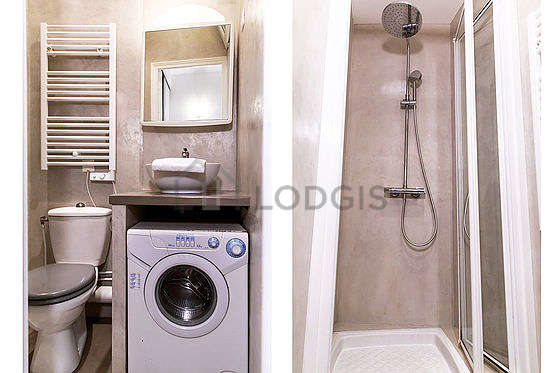 Este apartamento posee una bonito cocina con azulejo en el sueloy todo el equipamiento esencial para su vida diaria : placas eléctricas, refrigerador, micro ondas, congelador, campana extractora, tostador, hervidor, mesa, estantería, armario empotrado, vajilla, 2 silla(s), taburete, bar.