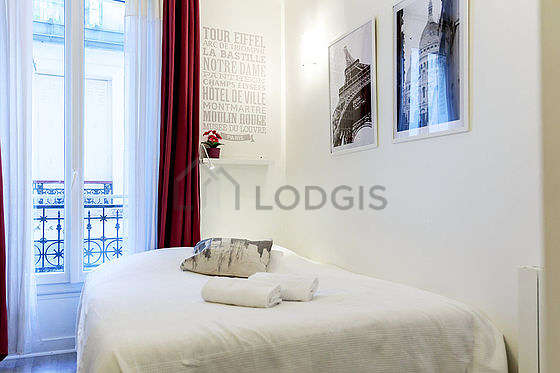 Este apartamento está formado por un salón con parquet en el suelo y ventanas y una vista a al patio. Este salón muy tanquilo está amueblado y equipado para que su estancia sea agradable : televisor, sábanas, edredones, ropero, estantería, armario empotrado1 sofá cama.