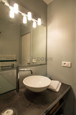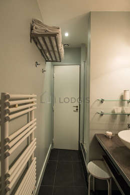 Este apartamento tiene una sala de baño agradable. Este baño tiene todo lo necesario para su bienestar diario : toallas, ducha, secador de pelo, radiador seca-toallas. El WC está separado de la sala del baño y ubicado en un espacio independiente.