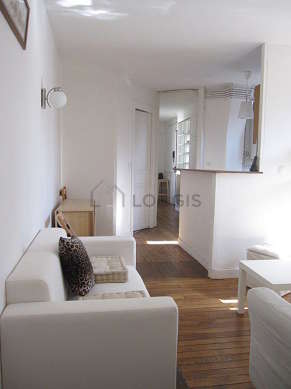 Este apartamento está formado por un salón con parquet en el suelo y ventanas doble acristalamiento y una vista a al patio. Este salón muy tanquilo está amueblado y equipado para que su estancia sea agradable : televisor, sofá, mesa, mesita, estantería, armario empotrado, 4 silla(s)1 sofá cama.