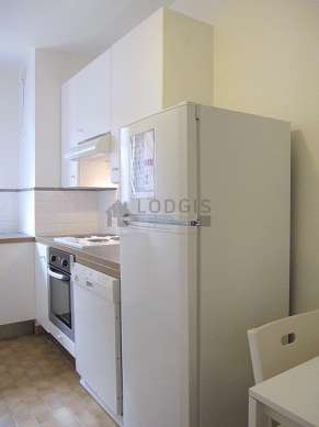Este apartamento posee una magnífica cocina con azulejo en el sueloy todo el equipamiento esencial para su vida diaria : placas eléctricas, refrigerador, congelador, horno, campana extractora, hervidor, mesa, armario empotrado, vajilla, 2 silla(s).
