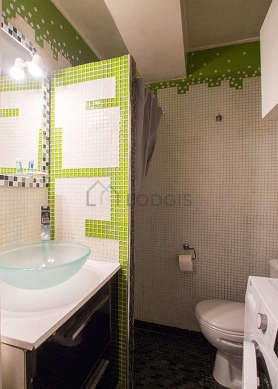Este apartamento posee una bonito cocina con linoleum en el sueloy todo el equipamiento necesario para su vida diaria : placas eléctricas, refrigerador, horno micro-ondas, congelador, hervidor, cafetera, armario empotrado, vajilla.