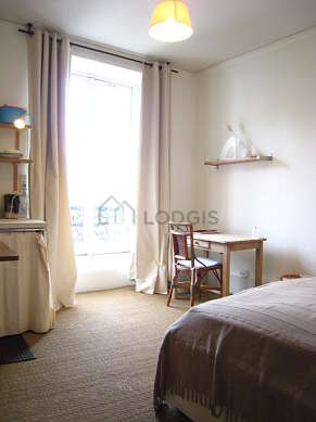 Este apartamento está formado por un salón con coco en el suelo y ventanas y una vista a la calle. Este salón muy tanquilo está amueblado y equipado para que su estancia sea agradable : sábanas, mesa, mesa de estudio, ropero, estantería, 1 silla(s), taburete1 cama.