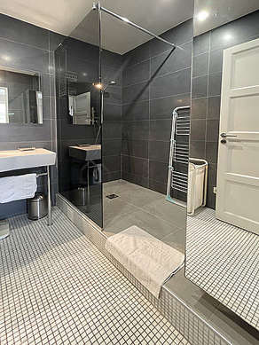 Este apartamento tiene una sala de baño agradable. Este baño tiene todo lo necesario para su bienestar diario : toallas, armario empotrado, ducha, secador de pelo, radiador seca-toallas. El WC está separado de la sala del baño y ubicado en un espacio independiente.