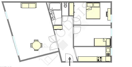 Este apartamento posee una magnífica cocina con azulejo en el sueloy todo el equipamiento esencial para su vida diaria : placas eléctricas, refrigerador, congelador, horno, tostador, hervidor, cafetera, armario empotrado, vajilla.