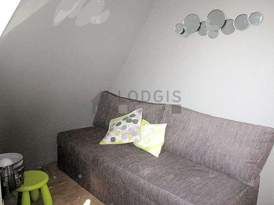 Este apartamento está formado por un salón con parquet en el suelo y ventanas doble acristalamiento y una vista a la calle. Este salón tranquilo está amueblado y equipado para que su estancia sea agradable : televisor, sábanas, edredones, armario empotrado, taburete1 futón.